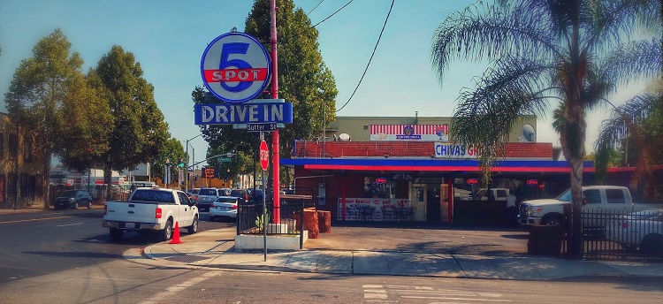 My sis wanted it to be a special night, so she whisked me to San Jose’s 5-spot Drive-In. It’s now a Mexican restaurant but back then was like something out of American Graffiti. It was all good until it took an hour to get our chili burgers. Ah, well.