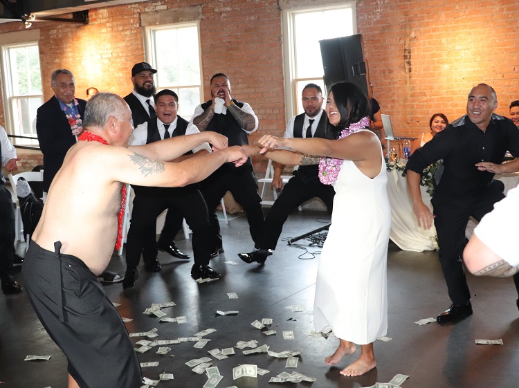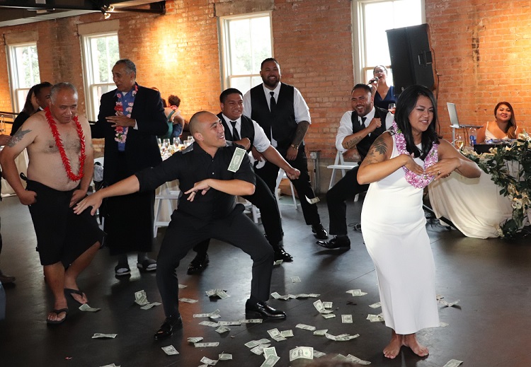 This was a Samoan and Filipino event and there were elements celebrating both cultures. I’ll let the photos tell most of the rest of the story, but suffice it to say the traditional Samoan dancing of Tenari’s people was a joy to watch. And Mafel brought smiles to everyone by performing a Polynesian dance she learned just for the occasion. It was a kick seeing Tenari and his parents and his huge Samoan brothers and cousins whooping it up as Mafel swayed and dollar bills flew.