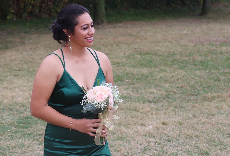 Mafel resplendent in her hand-sewn, bejeweled dress.