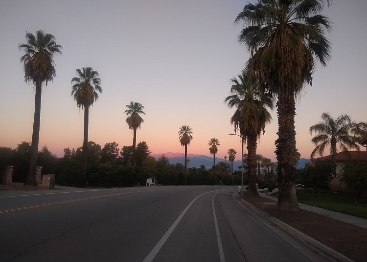 The sky is red and blue behind the old Smith house on Olive Avenue. By John Murphy Dog walking interrupted my bicycling for a while, but Saturday I got back on track with a trek from Highland to Redlands. My breathing was a little heavier than usual as I have not put in many milesContinue reading “Back in the saddle”