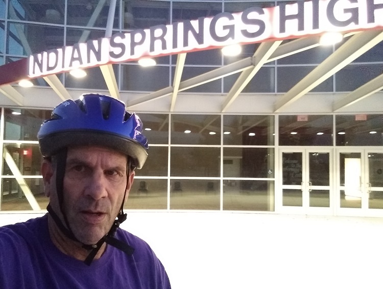 I was approaching a concrete barrier and applying the brakes when I went off a curb I couldn’t see in the dark. Splat. I tumbled off the bike right onto my big senior citizen butt. Oh, the embarrassment.